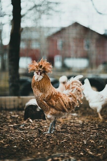 The Polish chicken is a striking ornamental breed, known for its crested head and gentle nature․ Originating in Europe, it comes in various colors and is prized for its unique appearance․ Friendly and calm, Polish chickens make great additions to backyard flocks․ Their crested feathers require regular grooming to prevent matting․ While they are not top egg producers, their beauty and docile temperament make them a favorite among enthusiasts․ Including high-quality images of Polish chickens in a PDF guide helps showcase their distinctive features and attracts breeders interested in ornamental poultry․